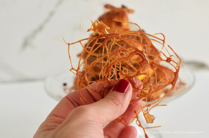 - La decorazione classica è con i fili di caramello, ma potete anche decorate con ciuffi di panna, o altro, a seconda dell’occasione.