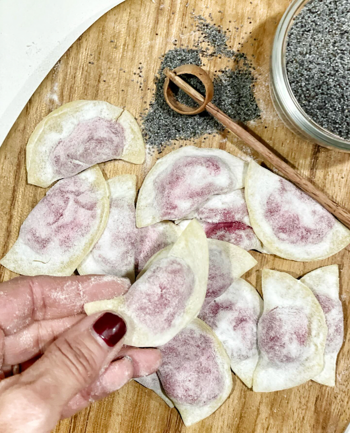 Si tratta di ravioli a mezza luna fatti con pasta all’uovo tirata molto sottile, tanto da intravederne il ripieno fatto di barbabietole rosse e patate. Si condiscono con dell’ottimo burro di malga e semi di papavero.